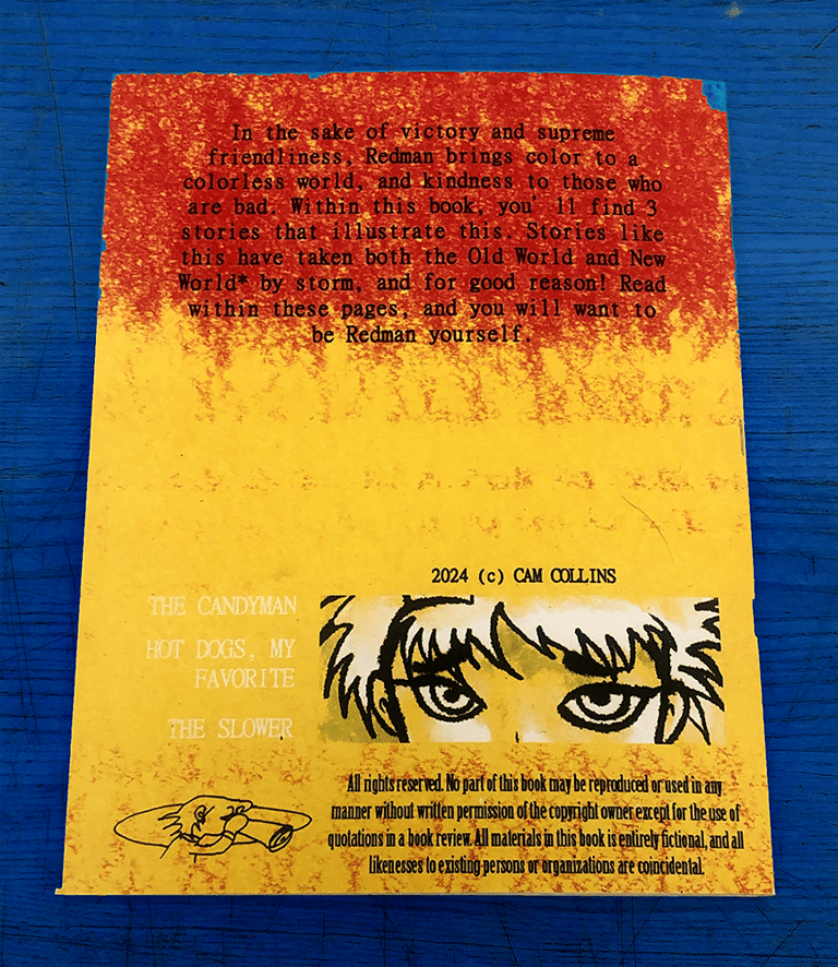 In this cold and colorless world, who better to gaze at you than the handsome, brilliant, colorful, and bold hero named REDMAN! Witness 3 incredible feats of heroism in this book illustrated and collected by Cam Collins.